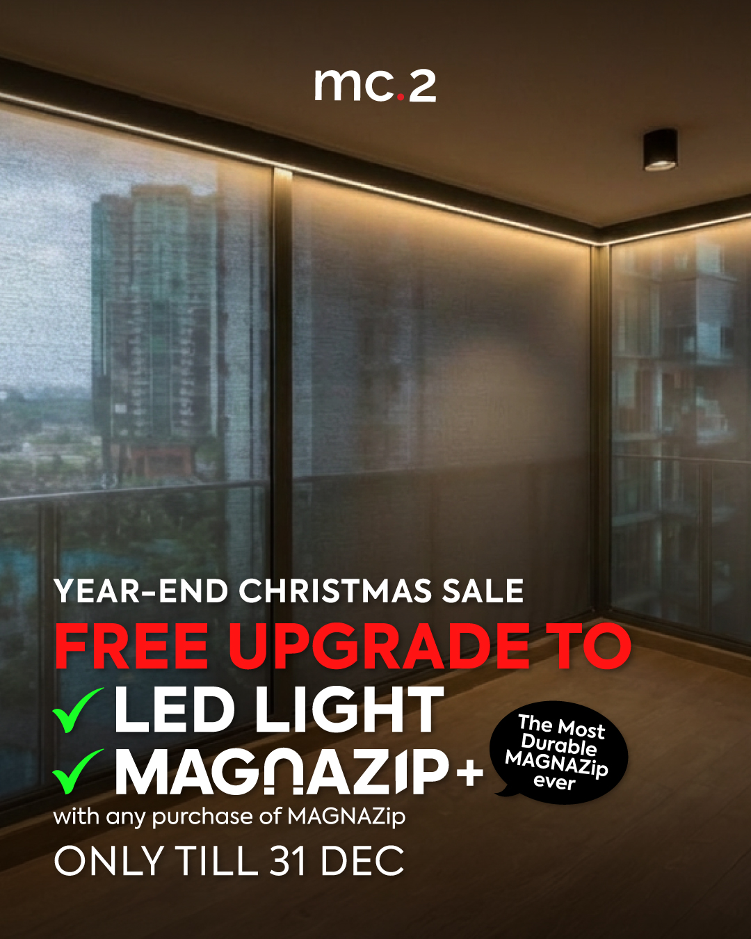No, MAGNAZip does not support manual override. Therefore, it is essential to choose a reputable company that prioritises quality, responsiveness, and after-sales support when sourcing track-guided blinds. At mc.2, we exclusively use high-quality tubular motors from Somfy, France, a renowned market leader with over 50 years of experience in automation. You can have full confidence in the quality and durability of our motors.